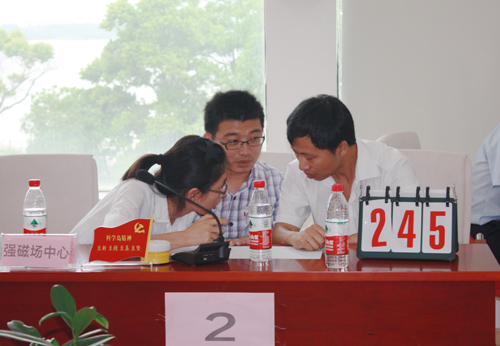 为贯彻“两学一做”学习教育,深入学习党的历史、党章党规、习近平总书记系列讲话,6月15日,合肥研究院 “学党章党规学系列讲话”知识竞赛决赛在医学物理中心报告厅举行,共有来自6支代表队的18名选手参加。强磁场中心代表队由张晶、王伟和陈永飞三名党员组成,组织委员邱宁担任领队,经过紧张激烈的角逐,强磁场中心代表队获得了知识竞赛决赛三等奖。