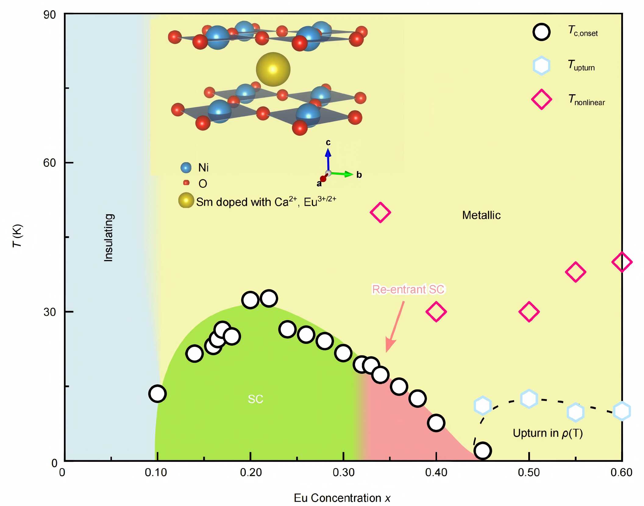 图3. Sm0.95-xCa0.05EuxNiO2的Eu掺杂完整相图。