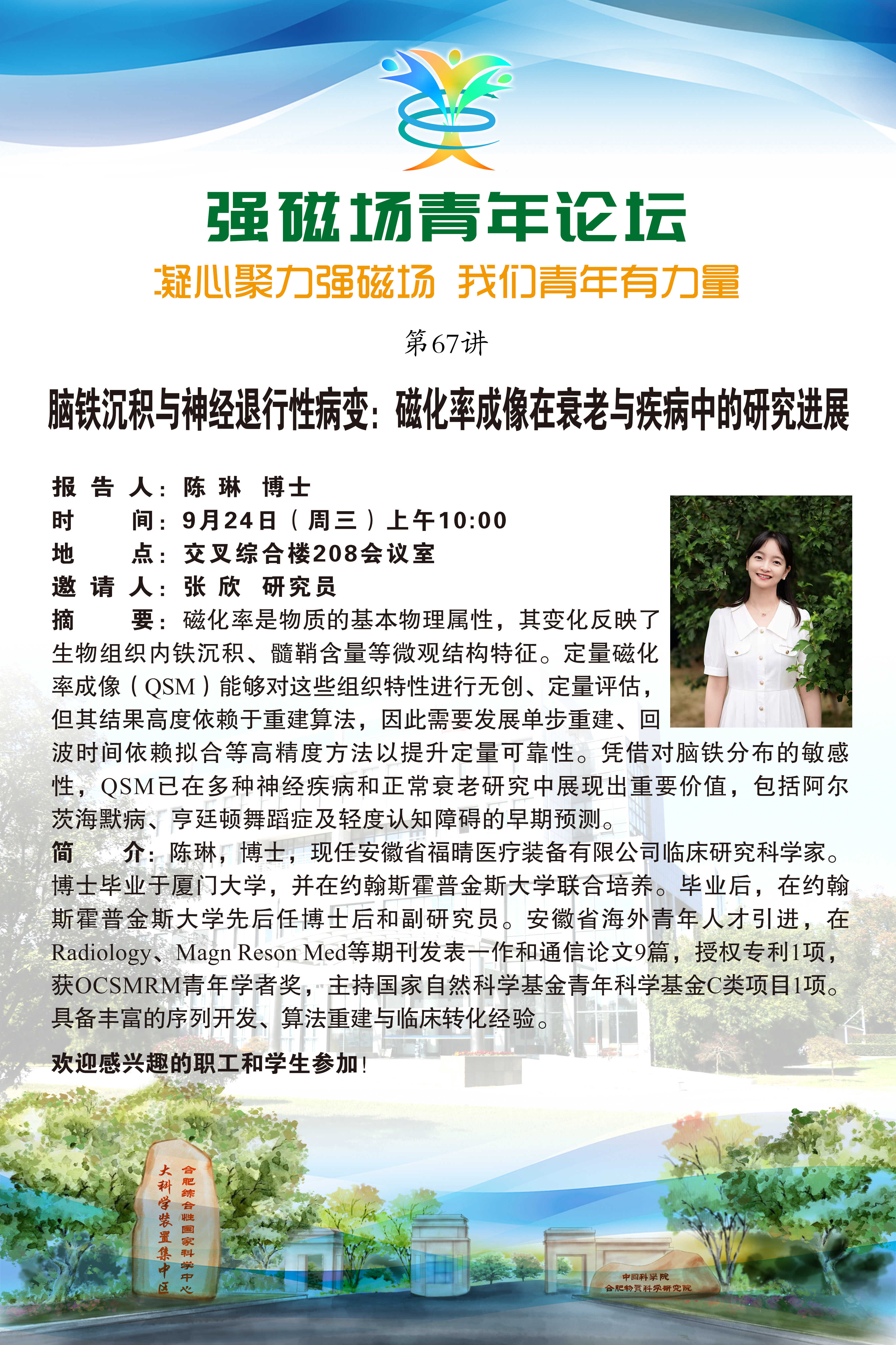 强磁场青年论坛第67讲(09.24):脑铁沉积与神经退行性病变:磁化率成像在衰老与疾病中的研究进展