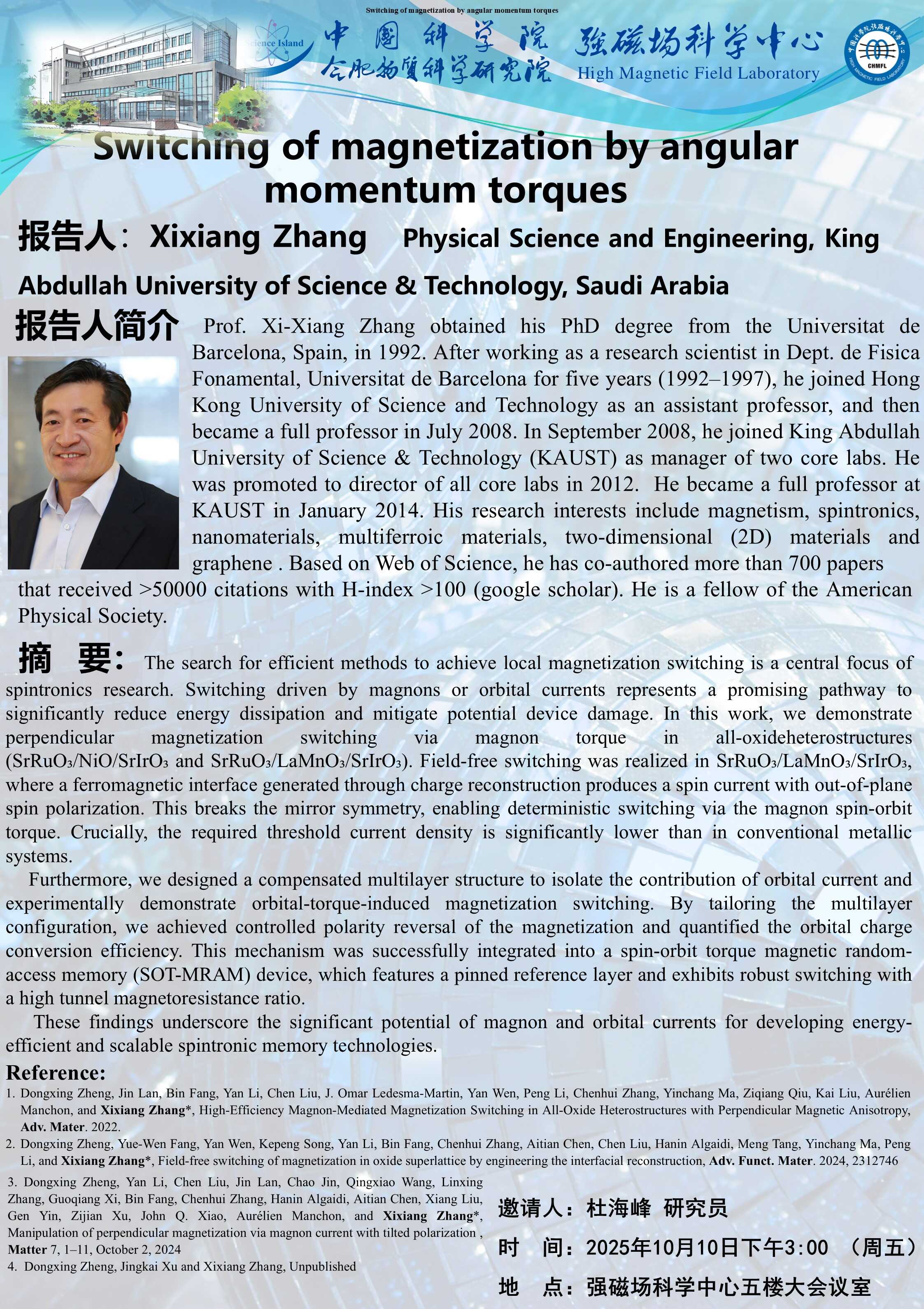 学术报告(10.10):Switching of magnetization by angular momentum torques
