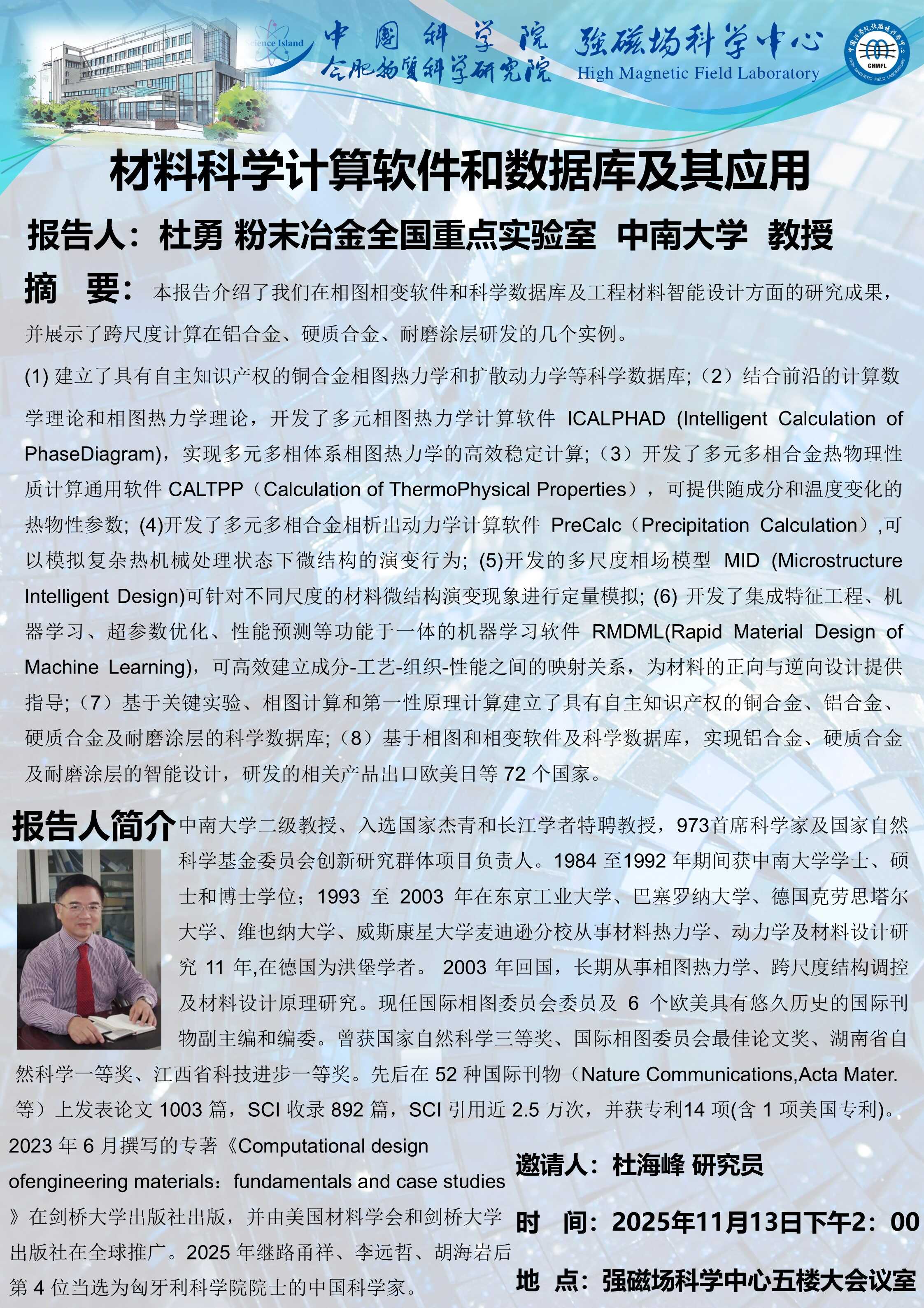 学术报告(11.13):材料科学计算软件和数据库及其应用