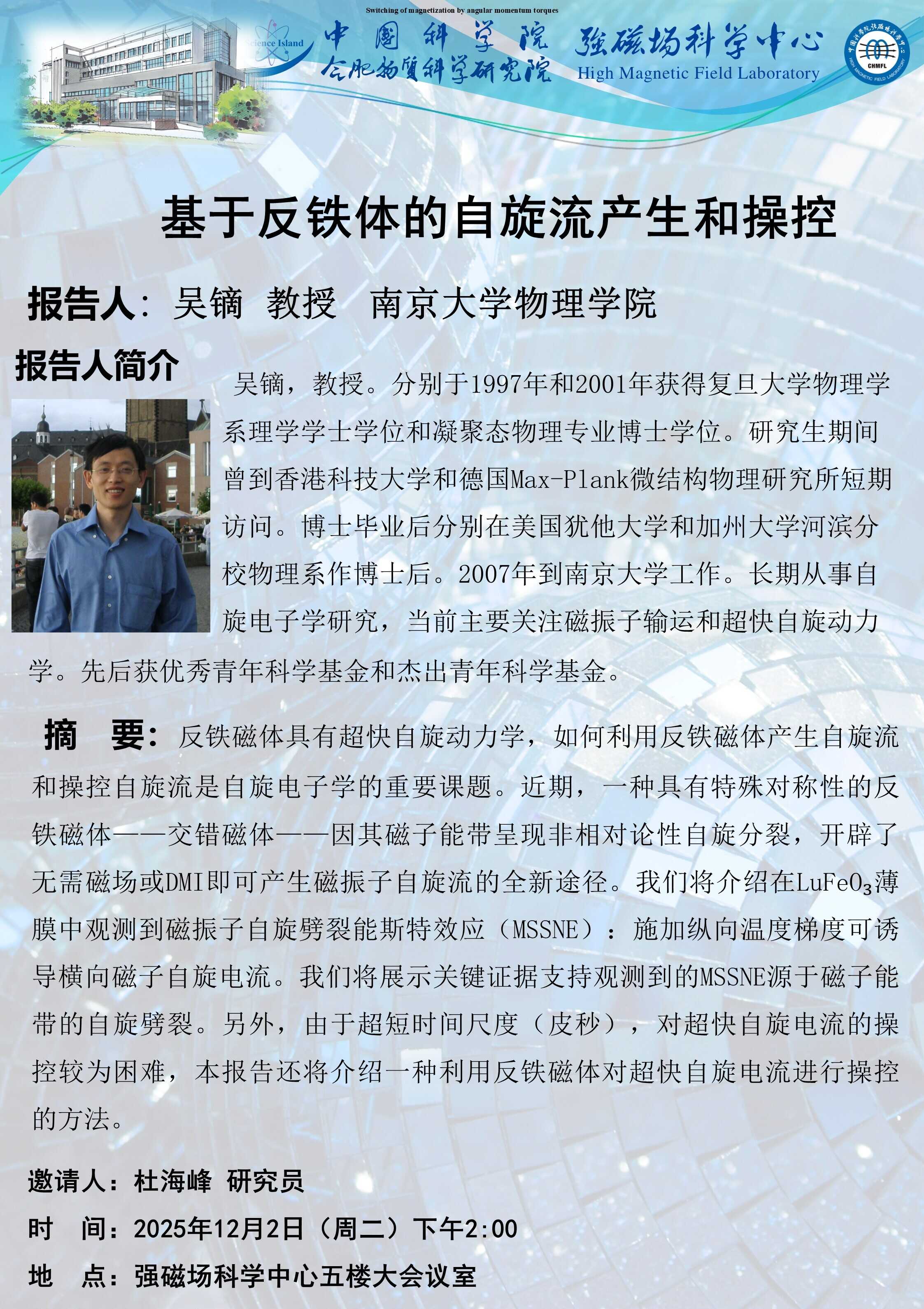 学术报告(12.02):基于反铁体的自旋流产生和操控