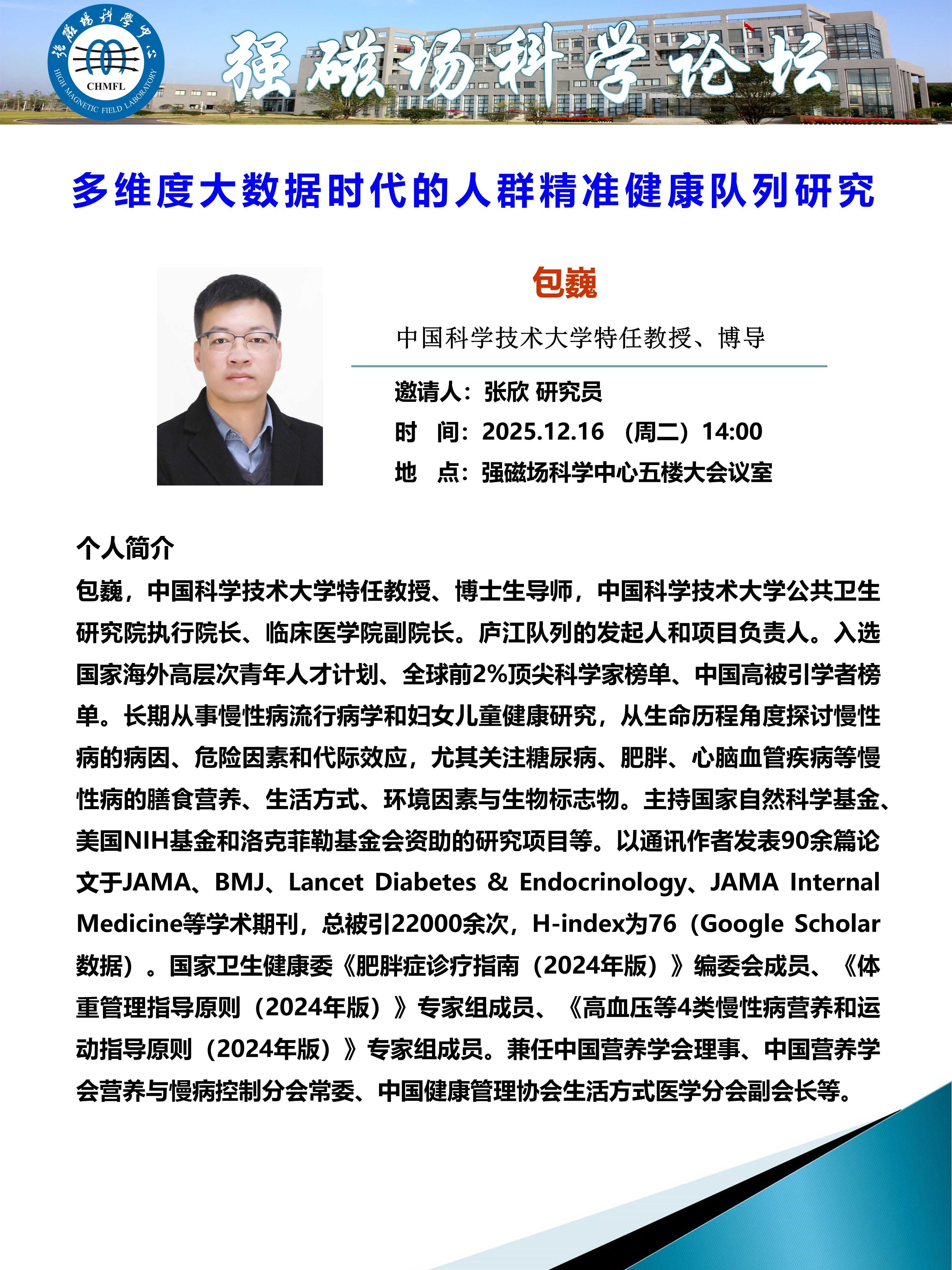 强磁场科学论坛:多维度大数据时代的人群精准健康队列研究