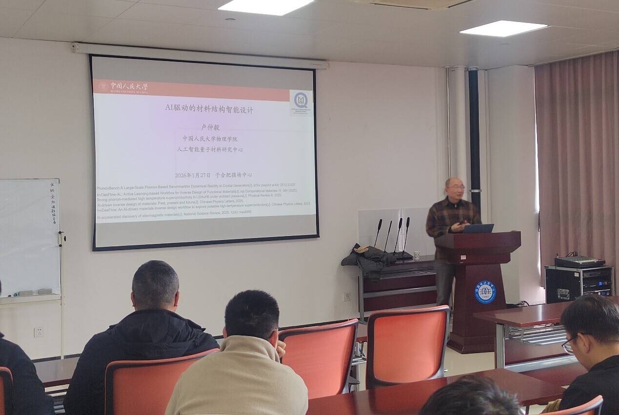 1月27日,强磁场科学中心邀请了中国人民大学卢仲毅教授做客低功耗量子材料建制化科研平台,卢仲毅教授作了题为“AI驱动的材料结构智能设计”的报告。报告会田明亮研究员主持,中心职工和学生参加了报告会。